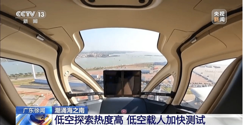 吴媚苗:除了载物,琼州海峡低空载人领域的探索也在加快。现在画面里我们看到的是正在进行试飞的电动垂直起降飞行器,这款机型能实现无人驾驶载人。试飞阶段,它主要测试机型稳定性、续航等性能。近期企业低空探索的热度持续高涨,积极申请试飞航线,还将有多种机型穿梭于琼州海峡。