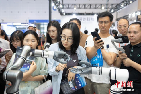 2025杭州国际人形机器人与机器人技术展览会上,参观者关注仿生手产品。